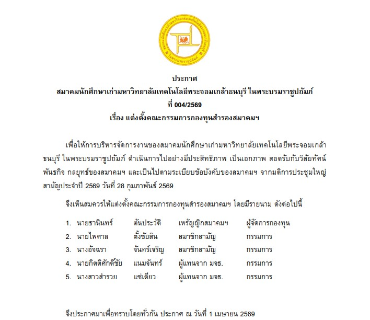 ------------------------------------------------------------------------------------------------------- -------------------------------------------------------------------------------------------------------- สมาคมนักศึกษาเก่ามหาวิทยาลัยเทคโนโลยีพระจอมเกล้าธนบุรี